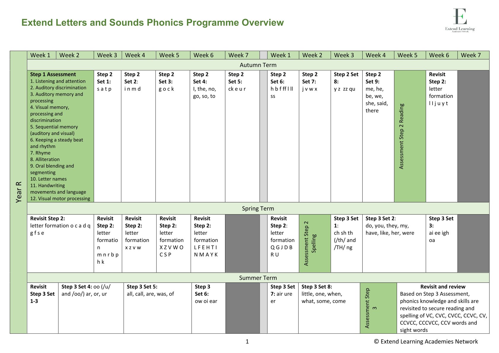 This is a validated systematic synthetic phonics (SSP) programme. Children begin this programme in EYFS and continue it into the first part of Year 2 where it is superseded by the Extend Spelling Programme.