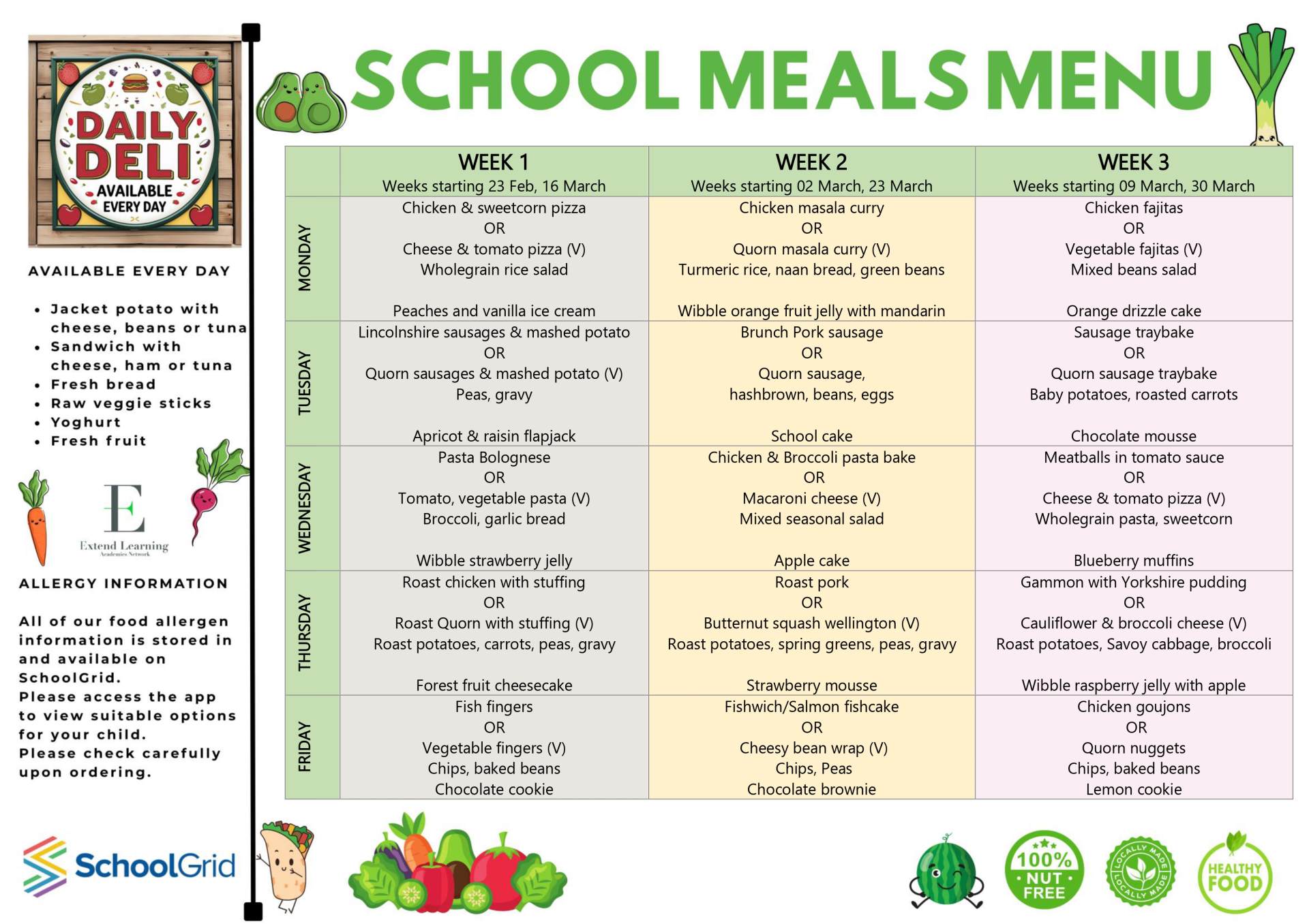 Our menus meet all of the school food standards and clearly show which choices contain one (or more) of the 14 key allergens, as defined by the Food Standards Agency. To further safeguard pupils who have been diagnosed with food allergies/intolerances, all catering teams across the trust will prepare home-cooked meals from the same recipes designed by our catering operations manager, Alex Crawley.