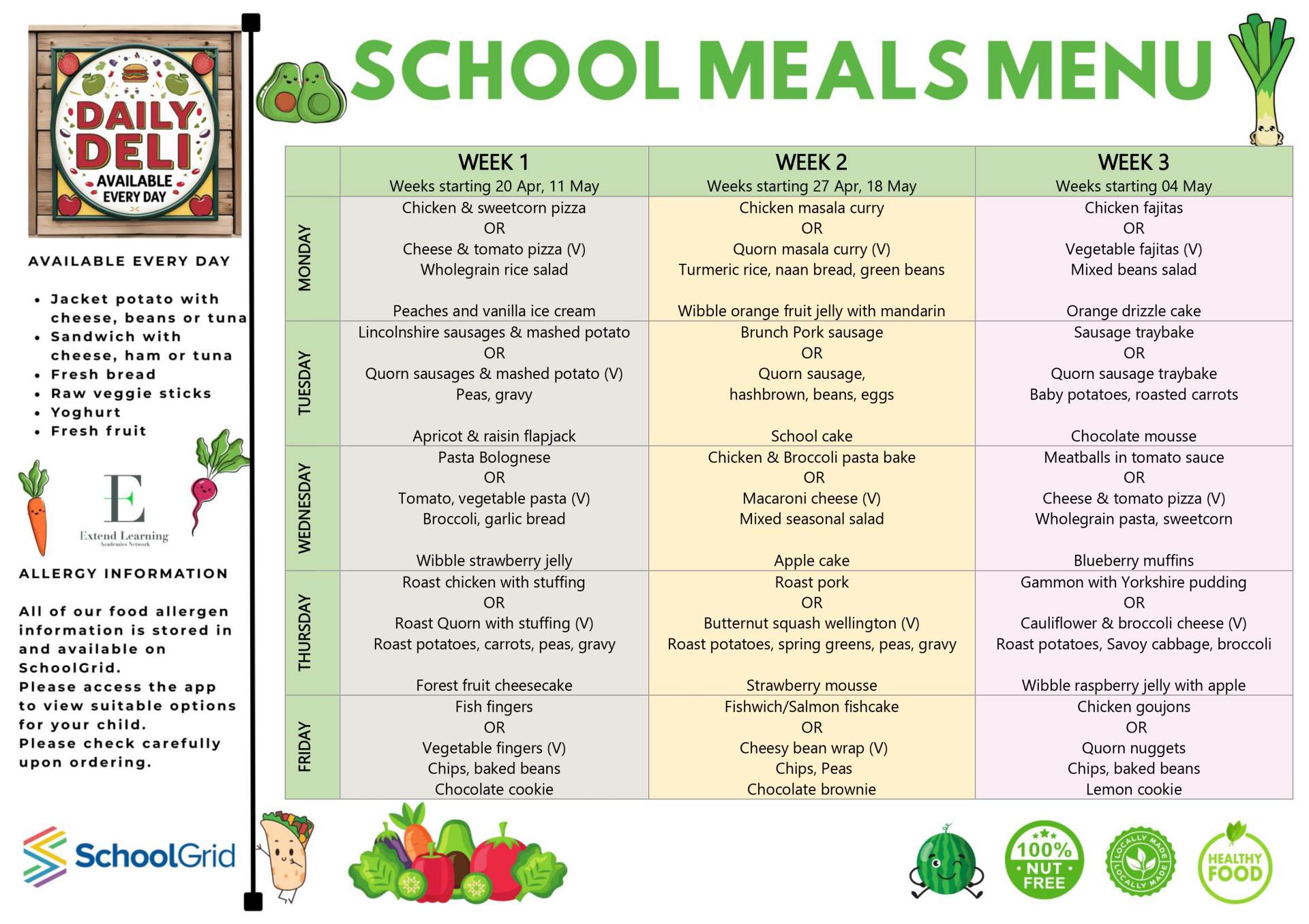 The ELAN catering team will do their best to cater to every child, but sadly, we cannot tailor meals for individual pupils. However, we have taken every opportunity to make sure that the menu is as inclusive as possible by ensuring there are choices available every day to suit a range of dietary needs. If your child does have a medical and diagnosed food allergy/intolerance, you must inform the school office immediately.
